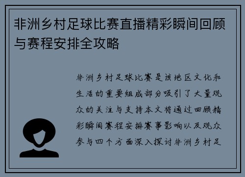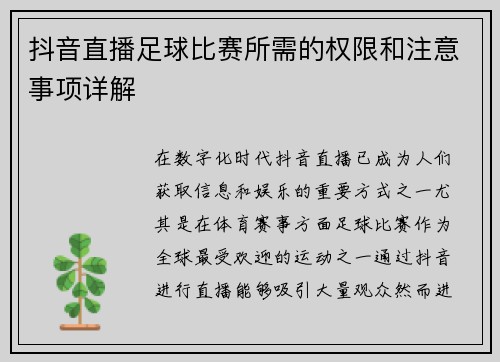 本文旨在对“重播国安足球比赛直播在线观看精彩回顾与分析尽在这里”这一主题进行全面而深入的探讨。首先,通过对国安足球队的历史和文化背景的介绍,为读者提供一个理解其比赛表现的基础;其次,分析近年来国安比赛中的关键战役,展示球队在不同阶段的表现及其影响;接着,讨论球迷与媒体在重播观看过程中的角色与反应,强...